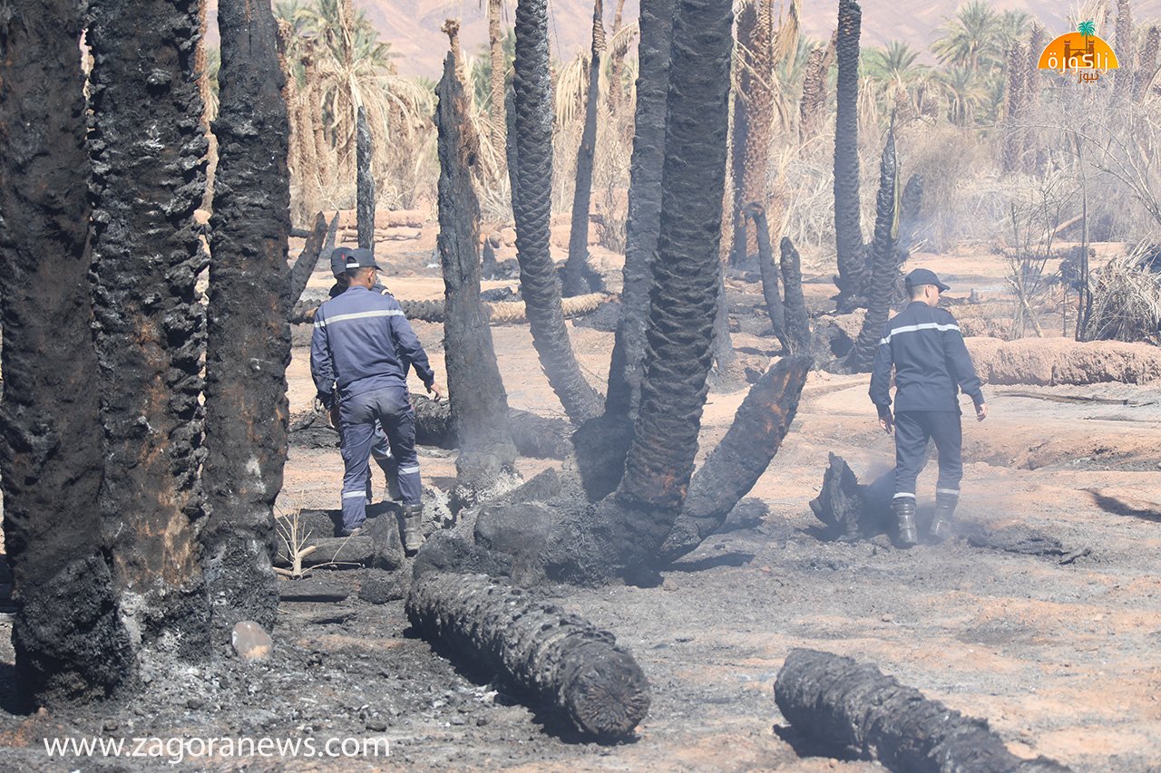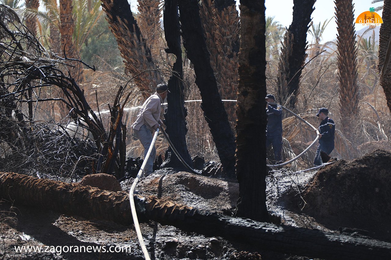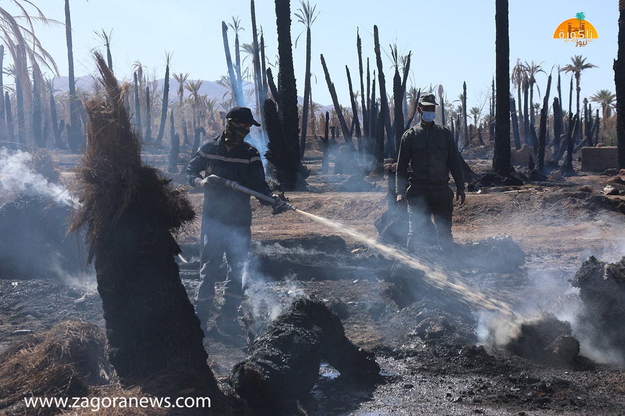 وتعمل فرق الوقاية المدنية بشكل متواصل دون توقف للتأكد من إخماد جميع بؤر النيران التي خلفها حريق تسركات زاكورة، خصوصاً أن طبيعة المنطقة الفلاحية التي شهدت الحريق تطرح عدة تحديات أمام عمليات التدخل من اهمها.