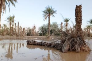 نخيل كان شامخا صار يئن في حضرة الطوفان، وواحة كانت تطعم أهلها، باتت تبحث عمن ينقذها.