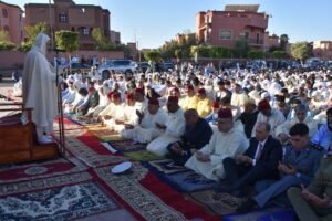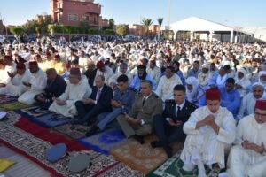 وقد تقدم جموع المصلين محمد علمي ودان، عامل إقليم زاكورة، مرفوقاً بوفد رسمي هام يضم ممثلي السلطات المحلية، والمنتخبين، ورؤساء المصالح الخارجية، بالإضافة إلى شخصيات عسكرية ومدنية. ويأتي هذا الحضور الرسمي في إطار التقاليد العريقة التي تحرص عليها الإدارة الترابية لمشاركة الساكنة أفراحها في مختلف المناسبات الدينية والوطنية، وتعزيز أواصر التواصل المباشر مع المواطنين.